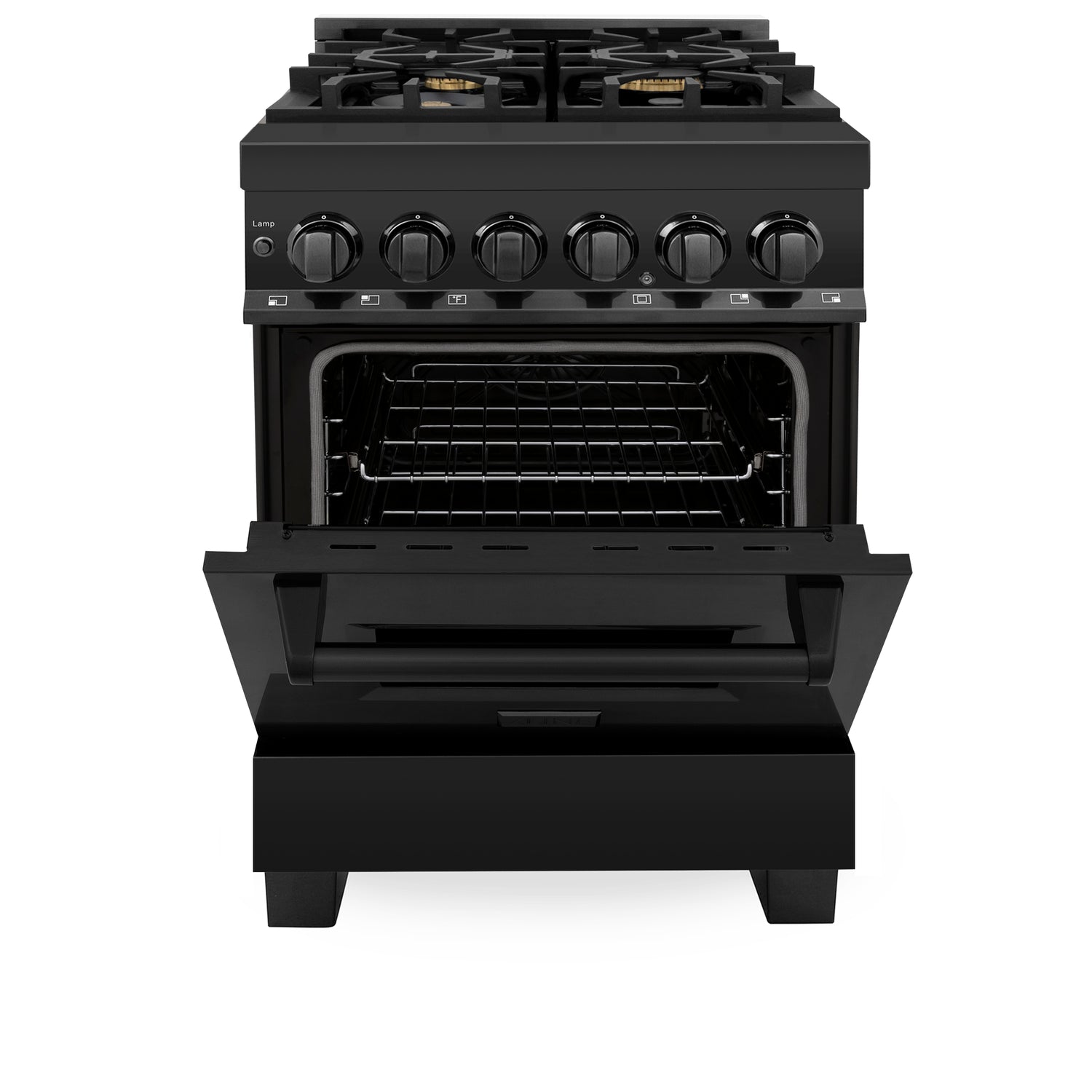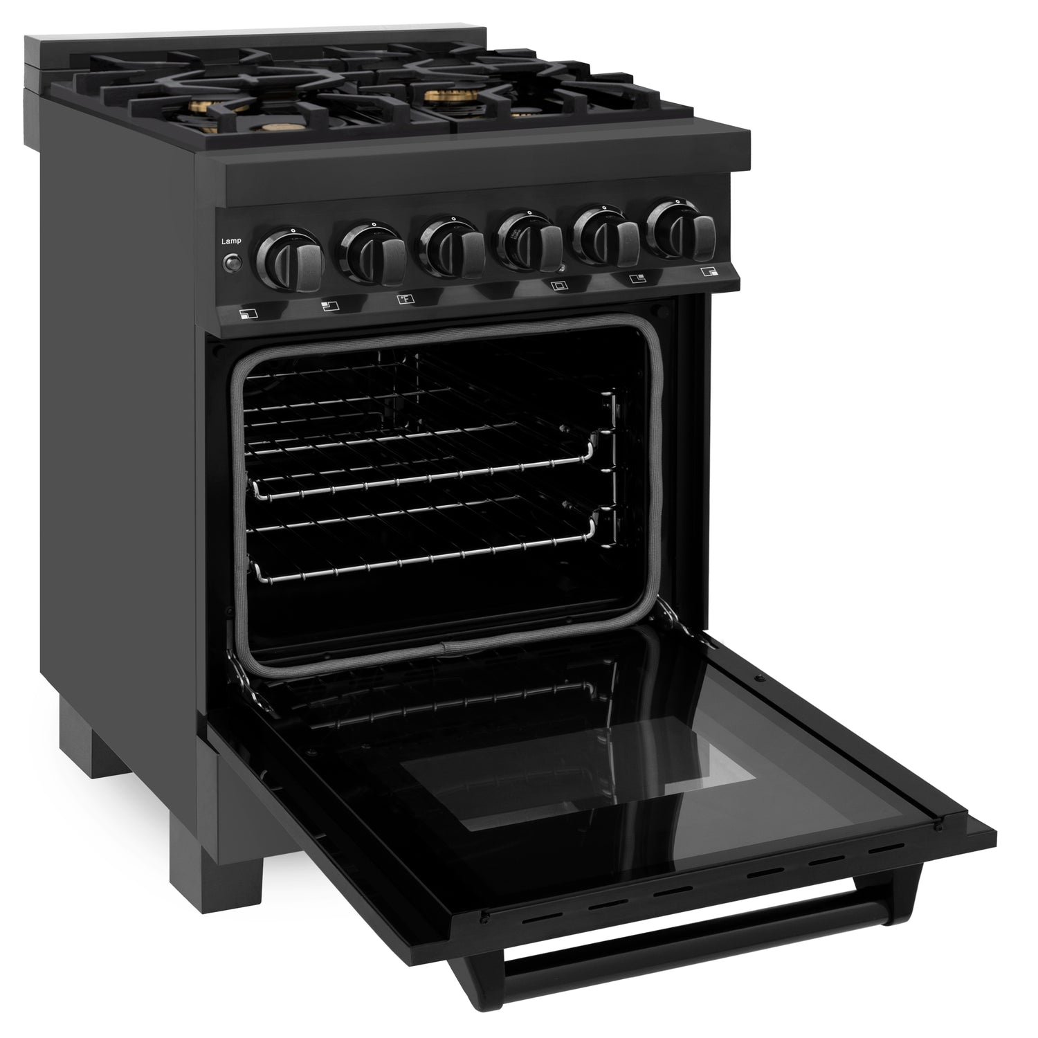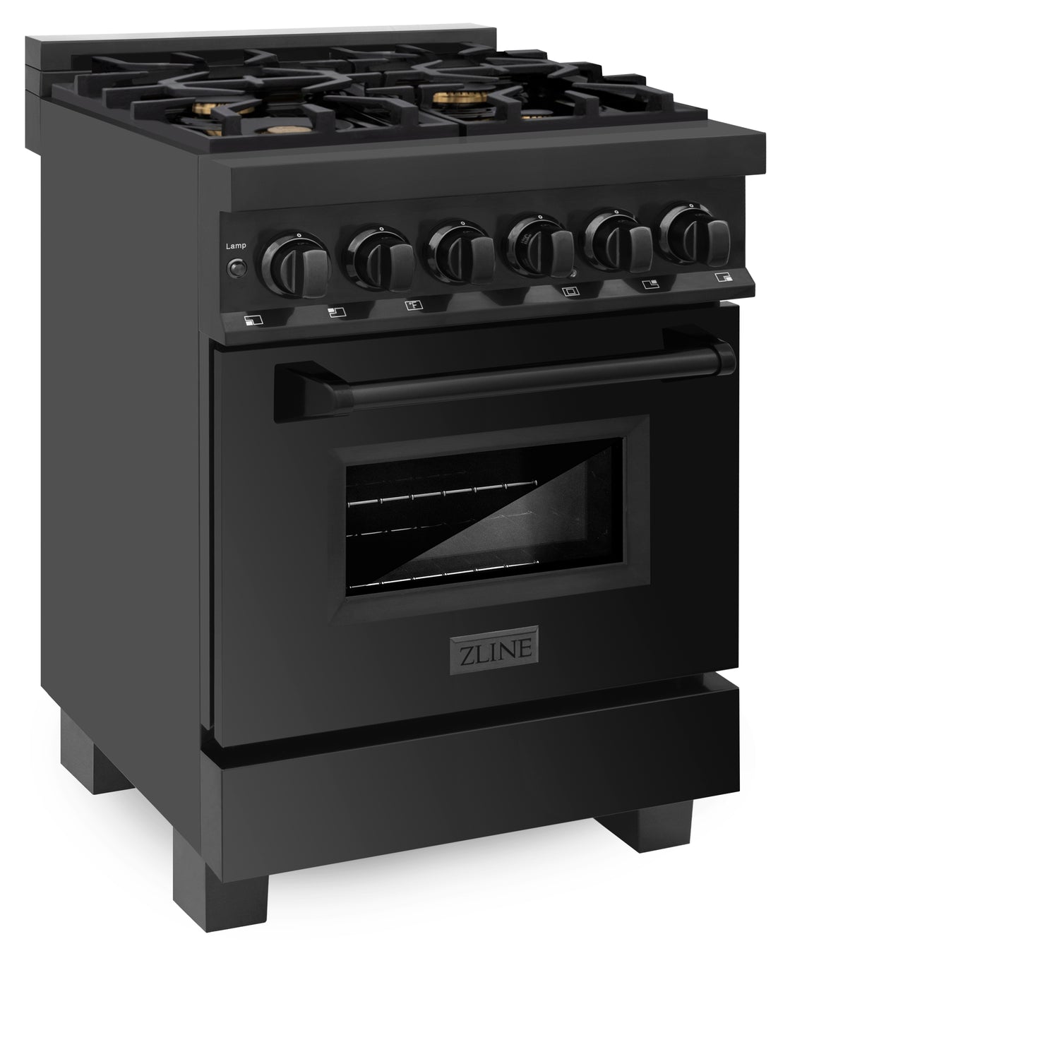 ZLINE 24" 2.8 cu ft Dual Fuel Range with Gas Stove and Electric Oven in Black Stainless Steel with Brass Burners (RAB-BR-24)