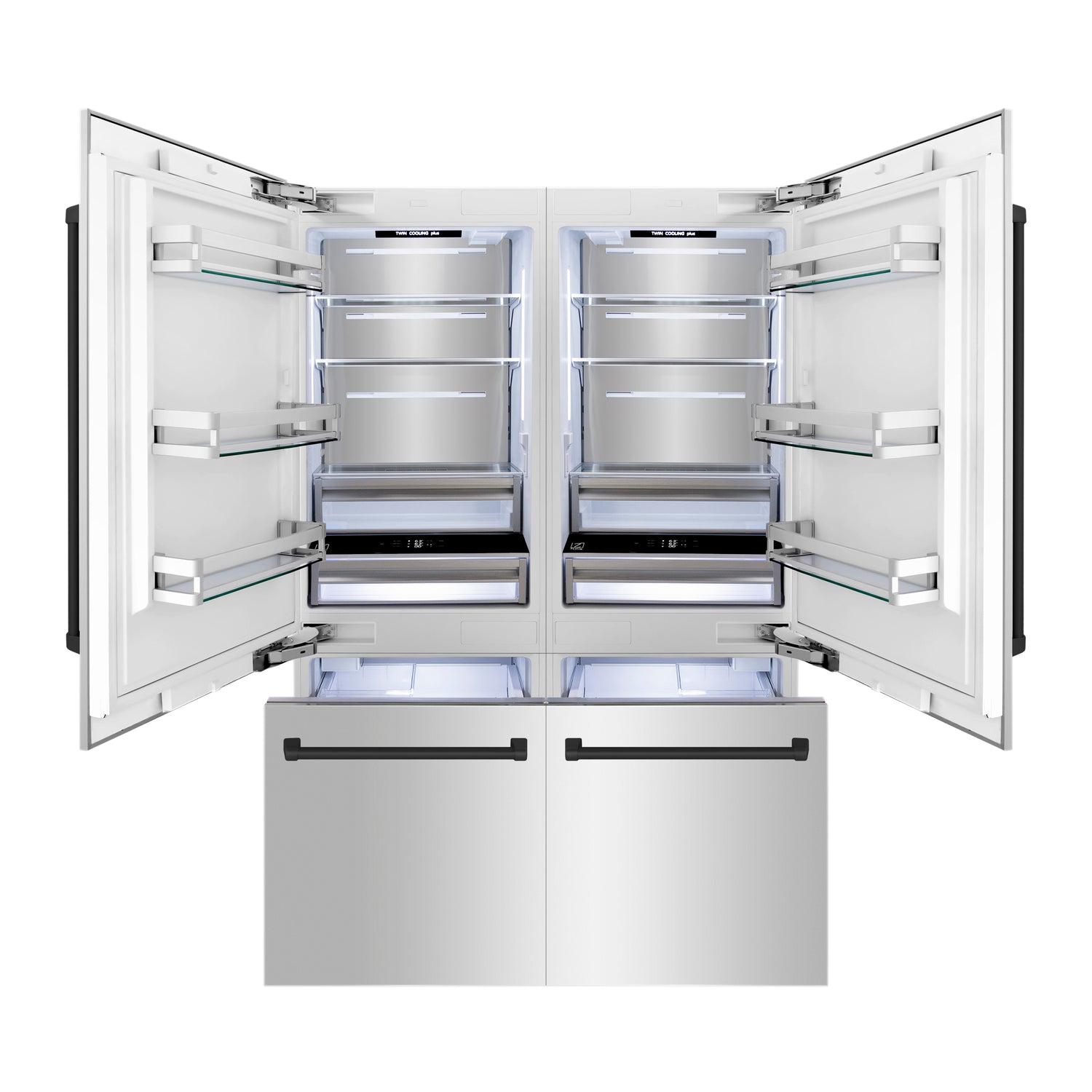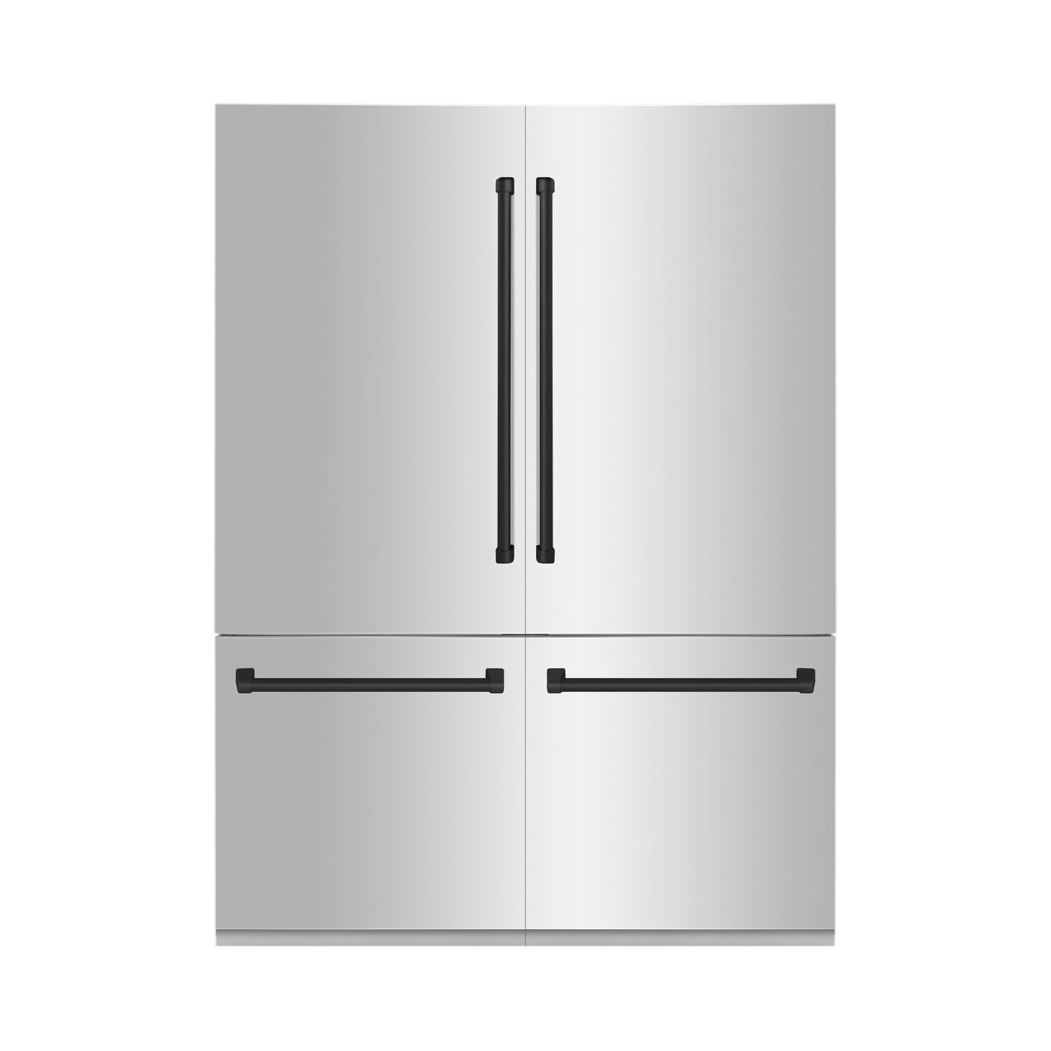 ZLINE 60" Autograph Edition 32.2 cu ft Built-in 4-Door French Door Refrigerator with Internal Water and Ice Dispenser in Stainless Steel with Matte Black Accents (RBIVZ-304-60-MB)